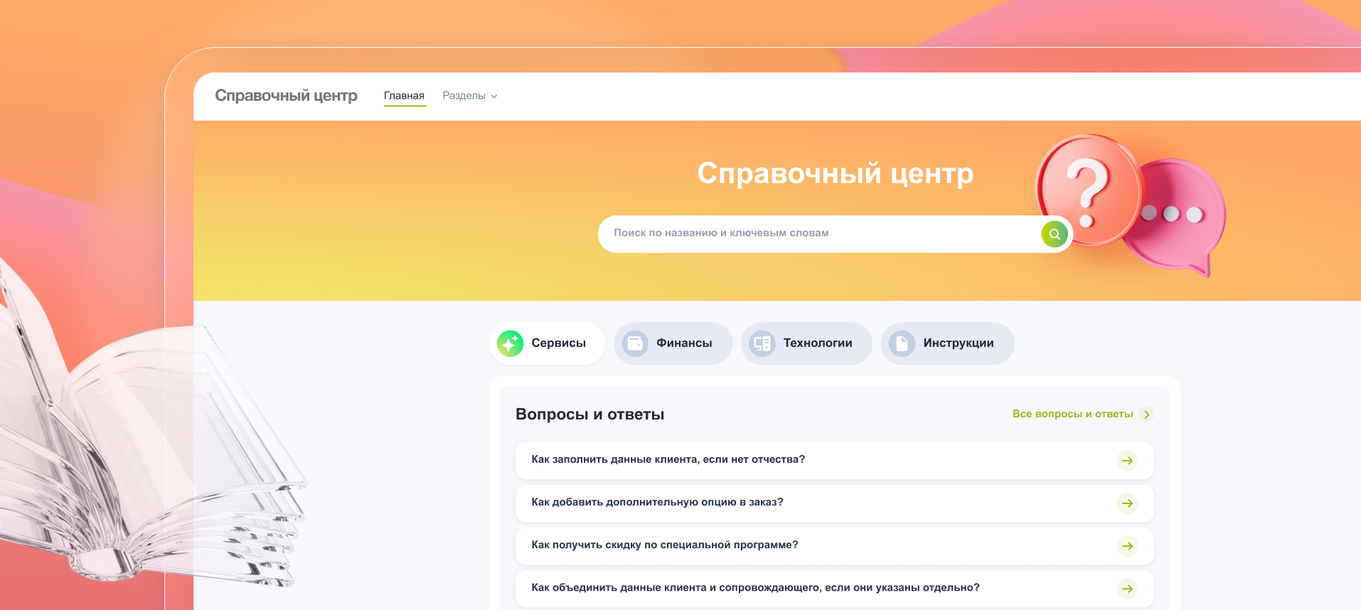 Мы разработали корпоративный справочный центр - единую площадку для хранения знаний и управления ими. Он позволяет гибко управлять контентом, разграничивать его доступность для разных групп пользователей, легко создавать новые разделы и блоки, подключая к базе знаний новые аудитории.