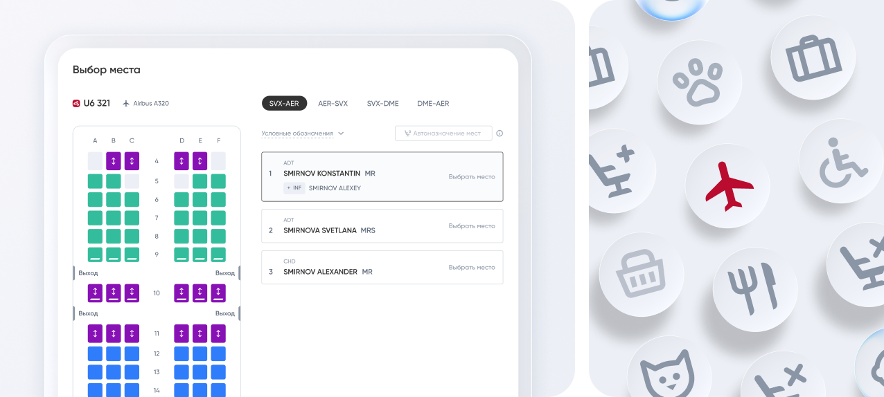 Графический веб-интерфейс для продажи авиабилетов и дополнительных услуг в офисах агентов и партнёров авиакомпании.