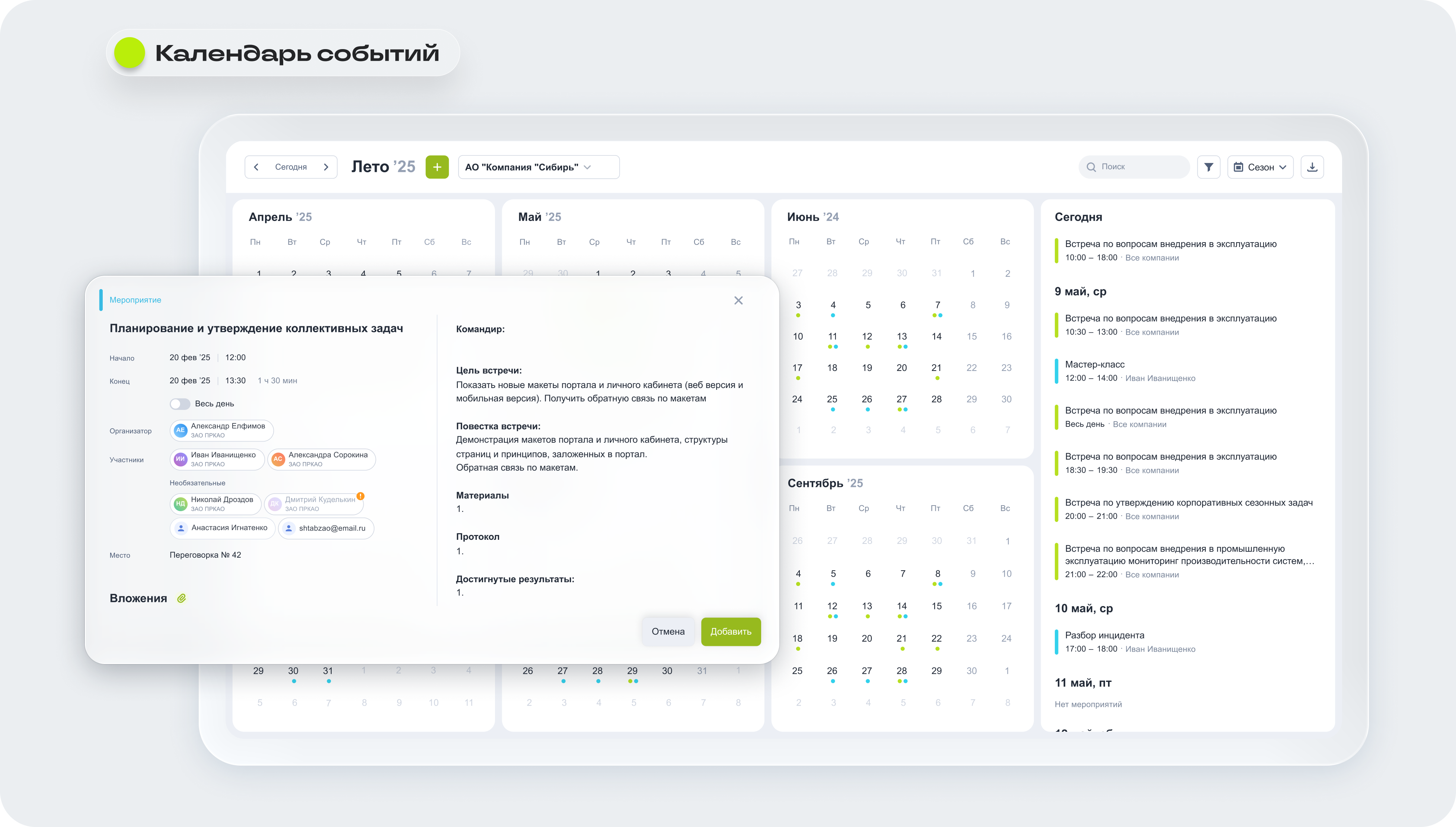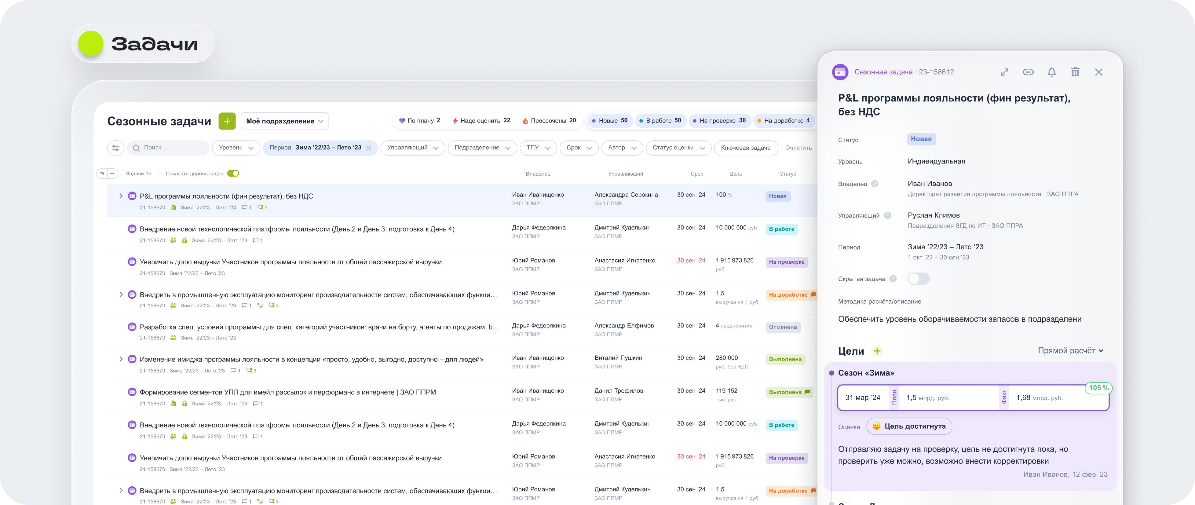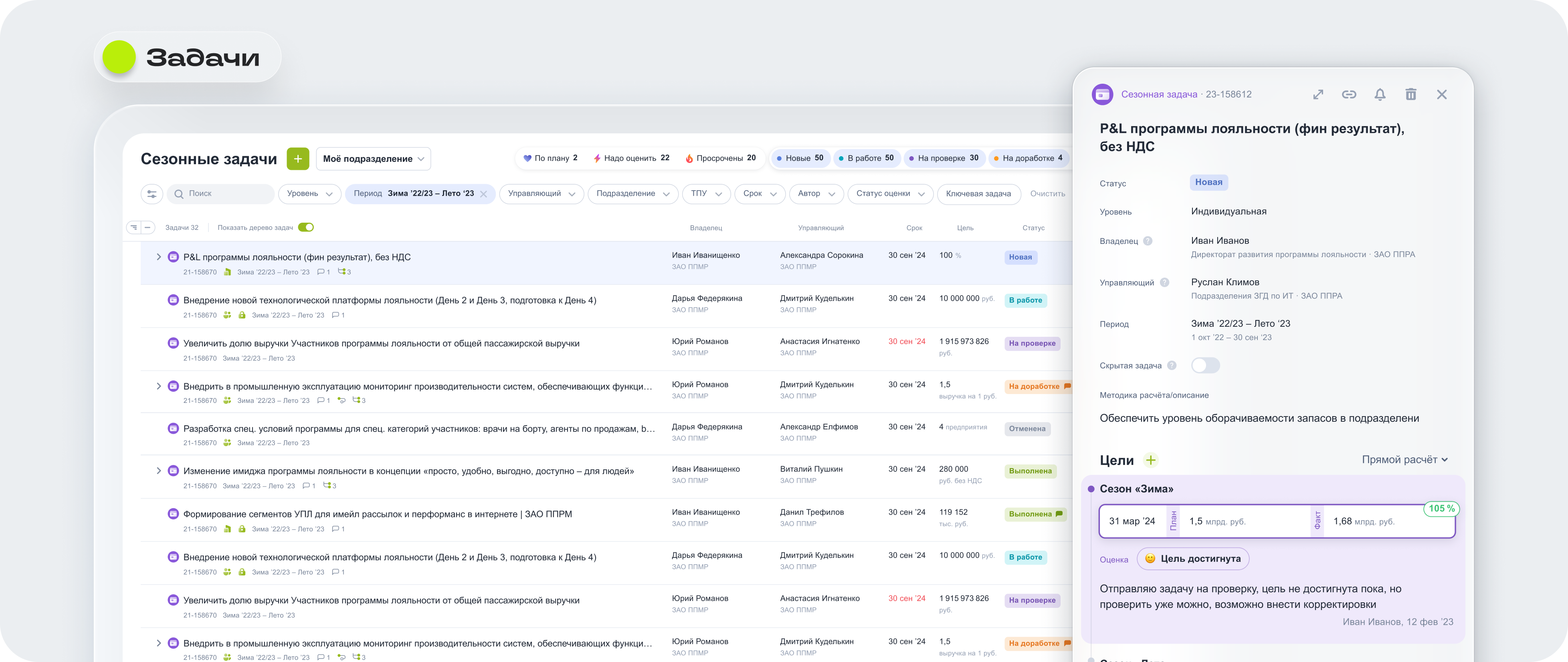 Инструмент предназначен для планирования и оценки задач в сезонных авиационных циклах «Зима / Лето». Его цель — повысить уровень автоматизации, прозрачности и управляемости в работе компаний холдинга.