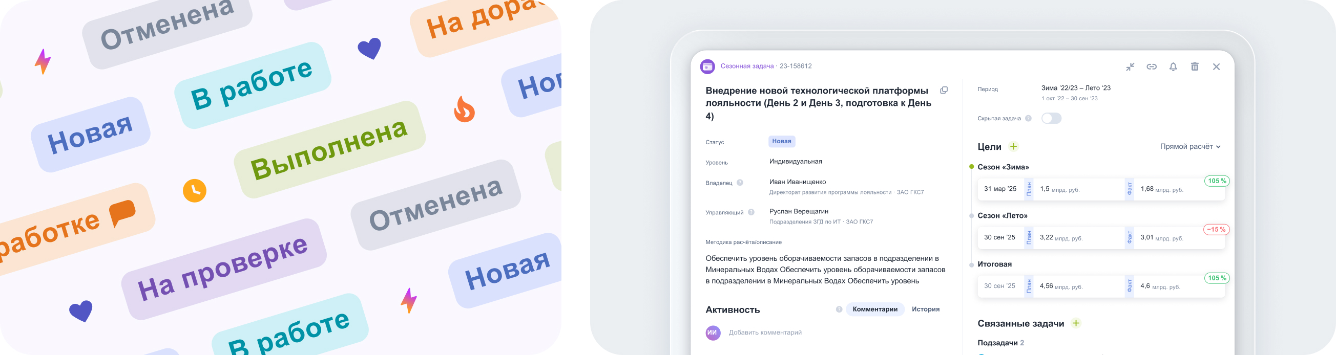 Система объединяет стратегическое сезонное планирование и оперативные задачи в едином цифровом контуре, позволяя видеть полную картину исполнения поручений и приказов.
