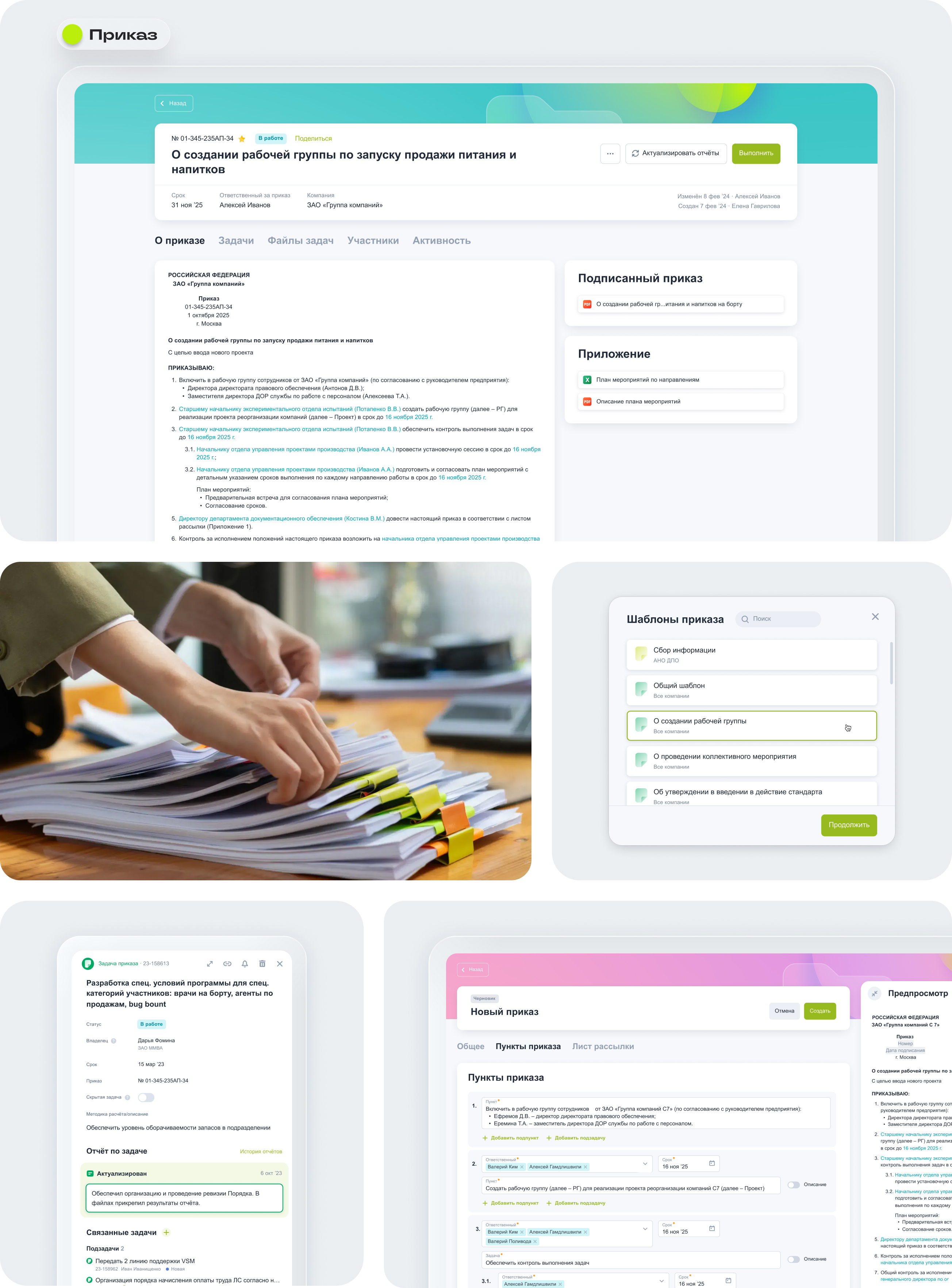 Бумажный «Приказ» превратили в цифровой конструктор: документы формируются структурированно, а пункты автоматически преобразуются в задачи, что экономит время и снижает риск ошибок.