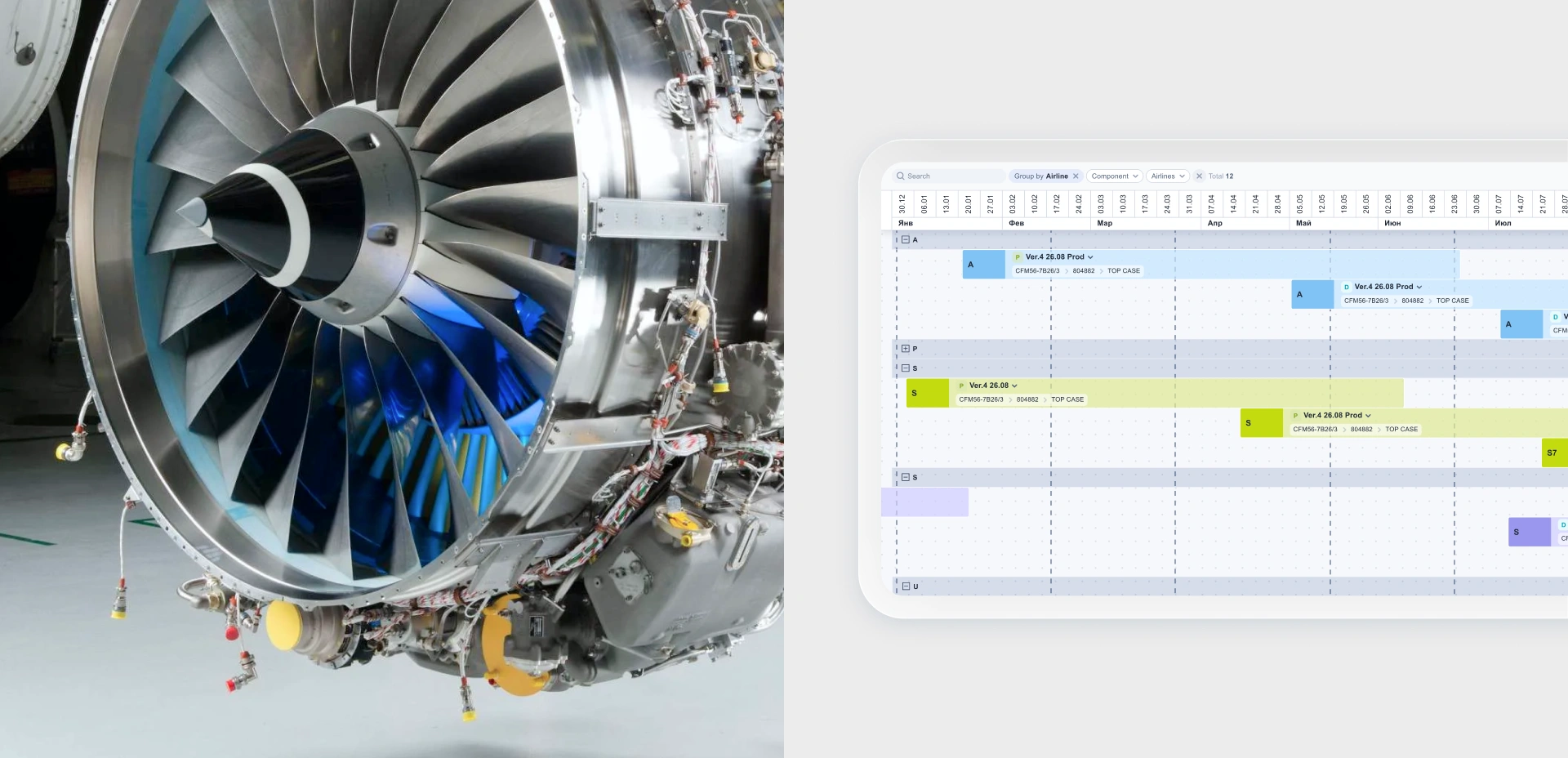 Это система, которая автоматизирует бизнес-процессы ремонта авиационных двигателей. Цель цифровизации производства — наращивание объема капитальных ремонтов двигателей в несколько раз.