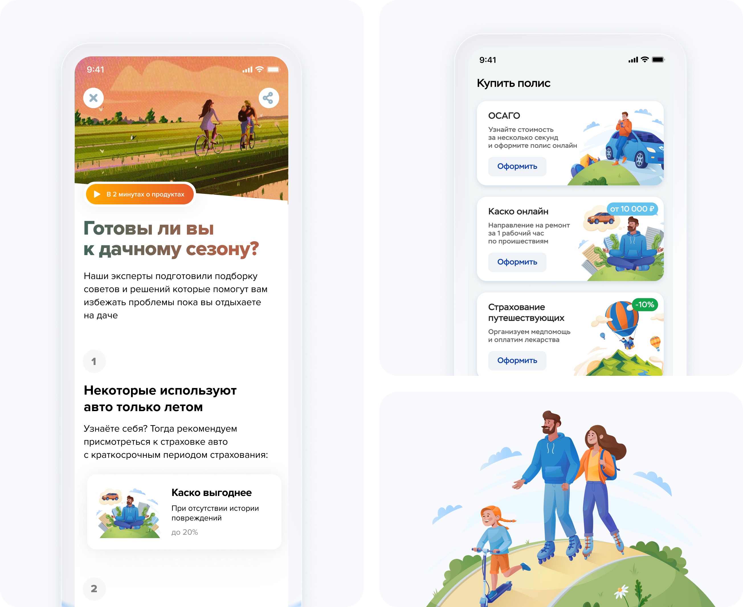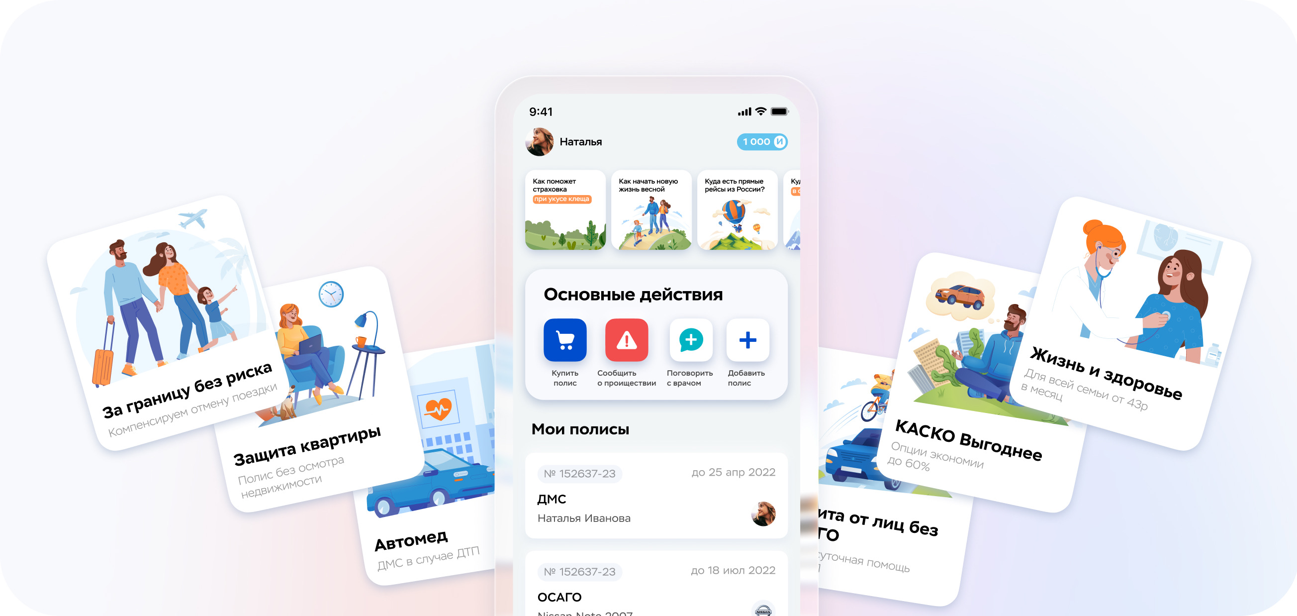 Бизнесу важно, чтобы продукты и дополнительные предложения были заметны и хорошо продавались, а пользователю — быстро и без лишних усилий решать свои задачи: оформить страховку, записаться к врачу или сообщить о страховом случае.