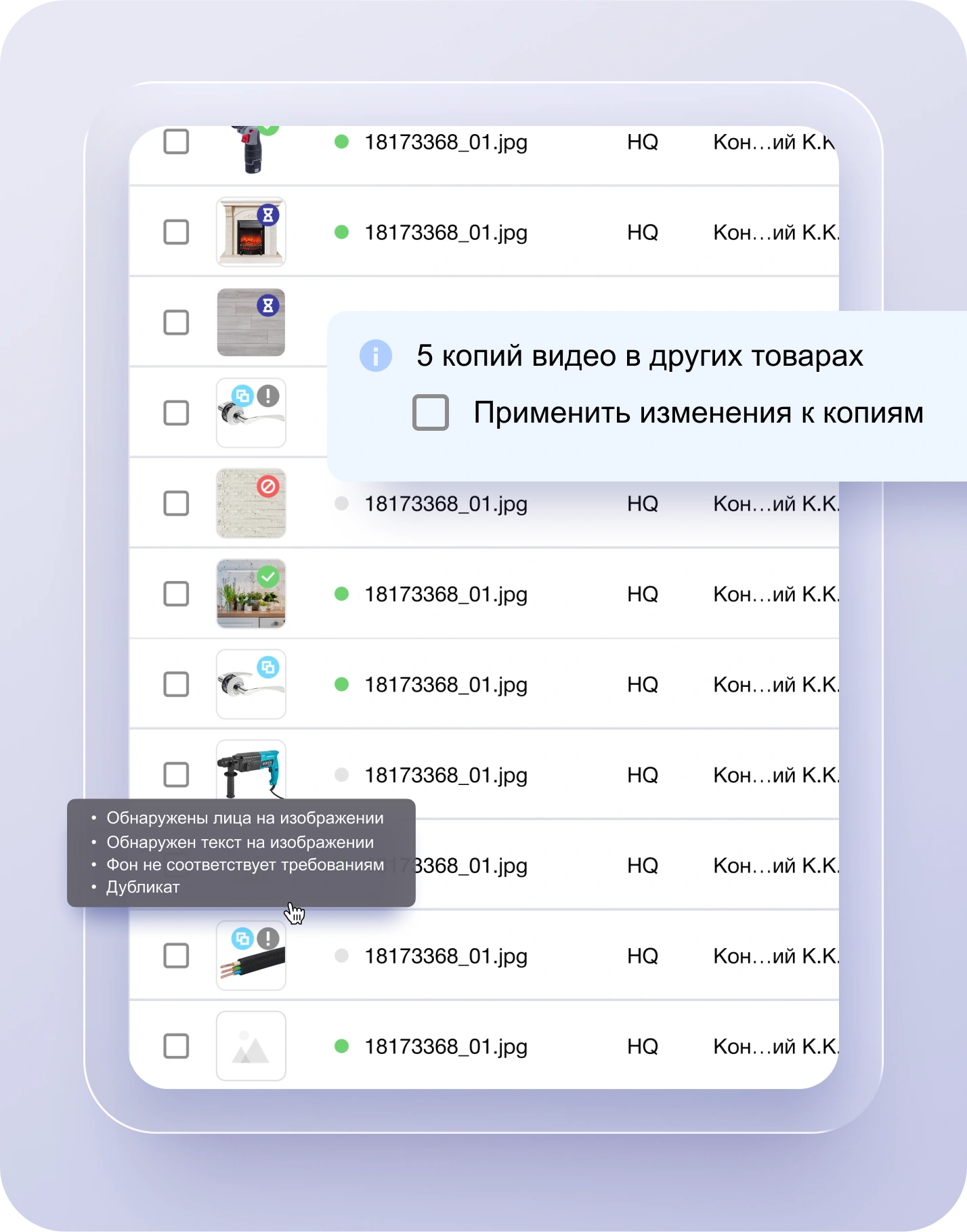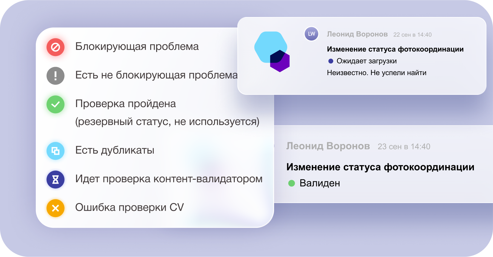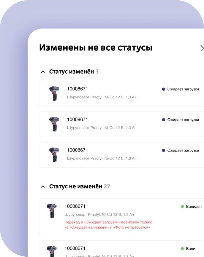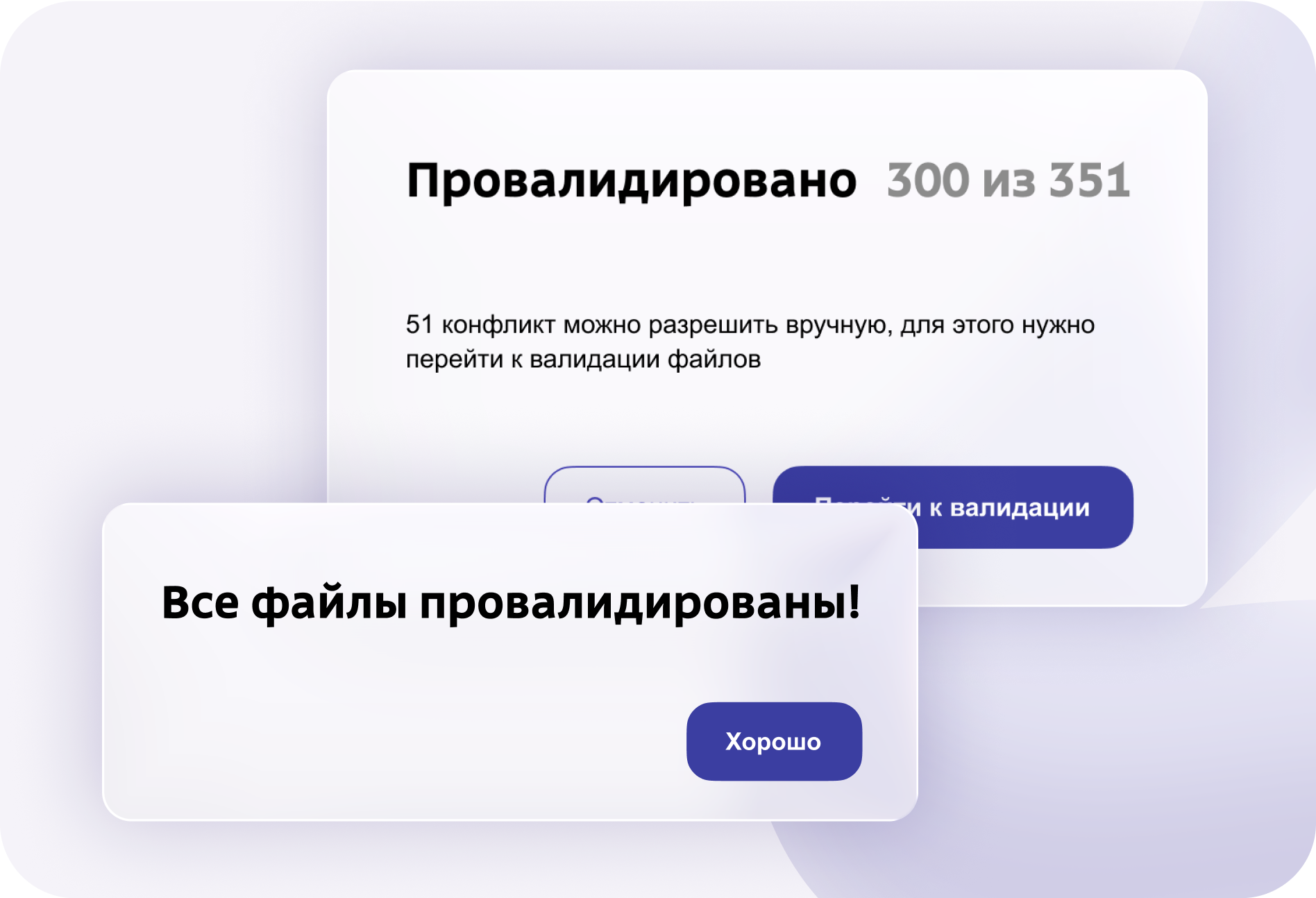 Любые несоответствия можно быстро исправить – нотификации укажут на ошибку. Хинты, тултипы и статусы позволяют пользователю понимать, что происходит в каждый момент времени