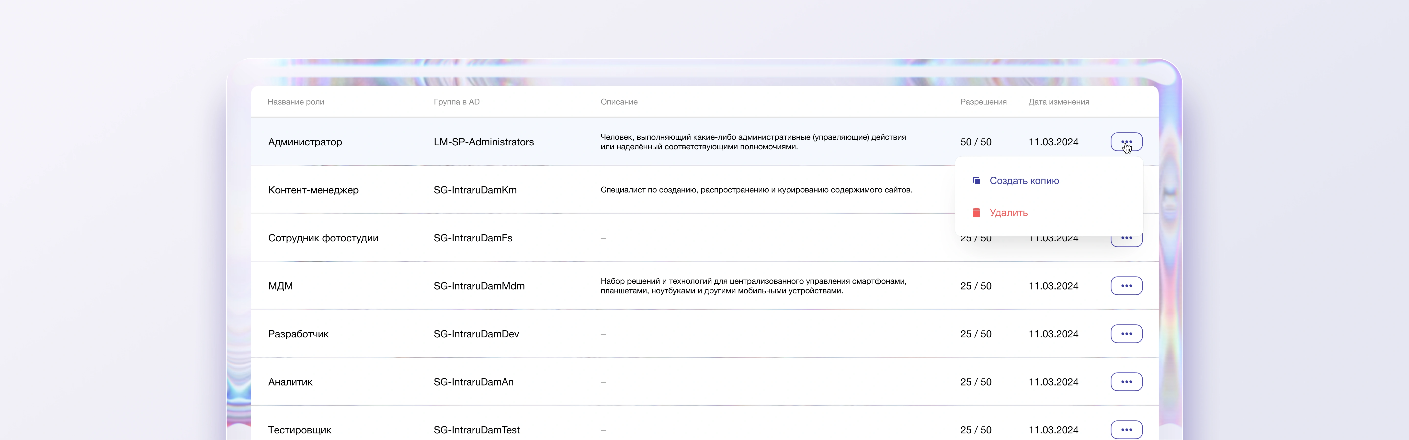 Для каждой роли свой интерфейс, несмотря на то что это один продукт. Свои настройки для каждой роли, персонализация