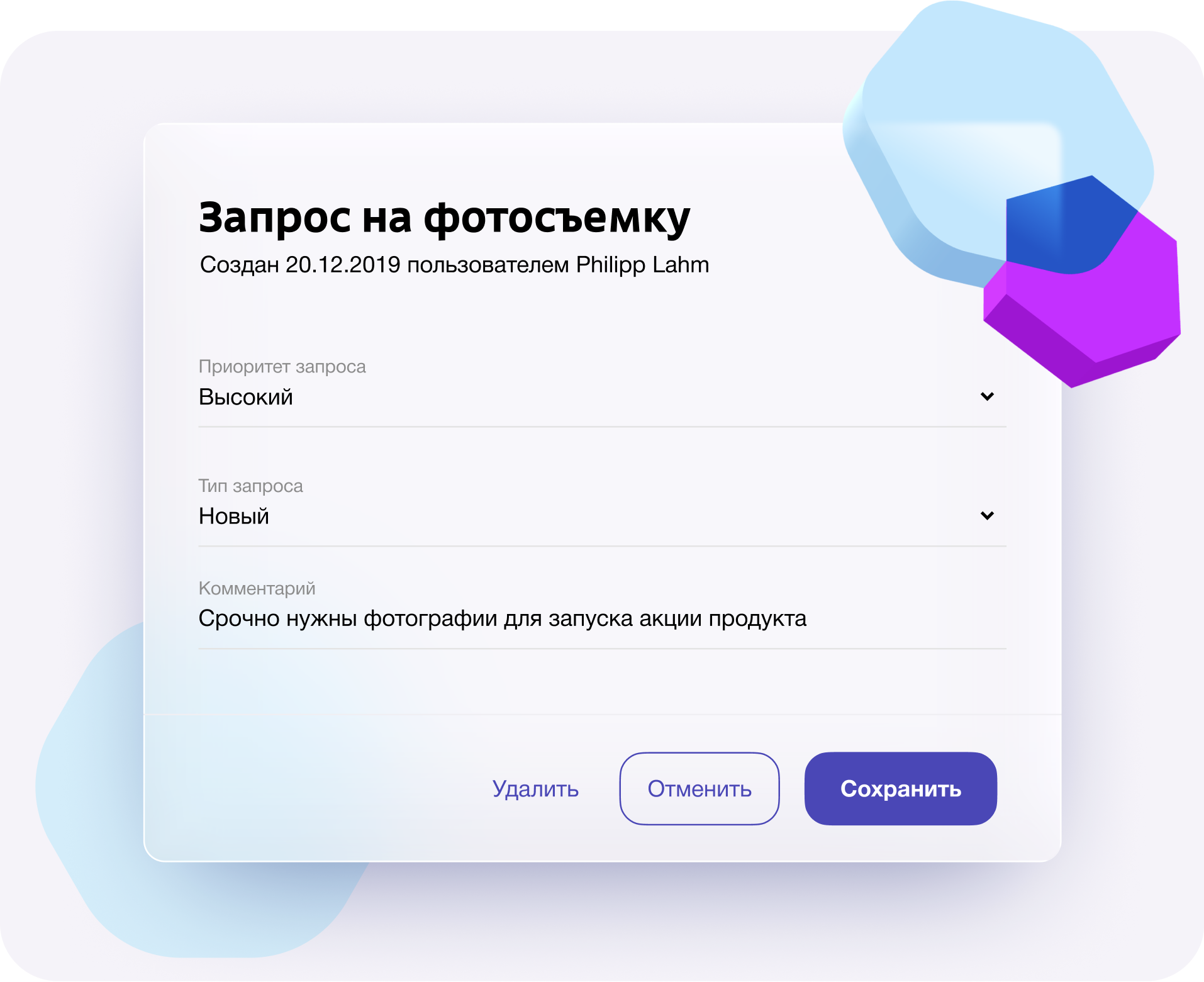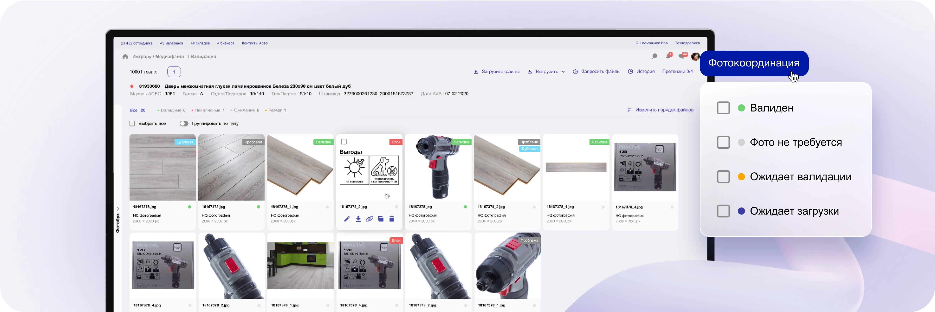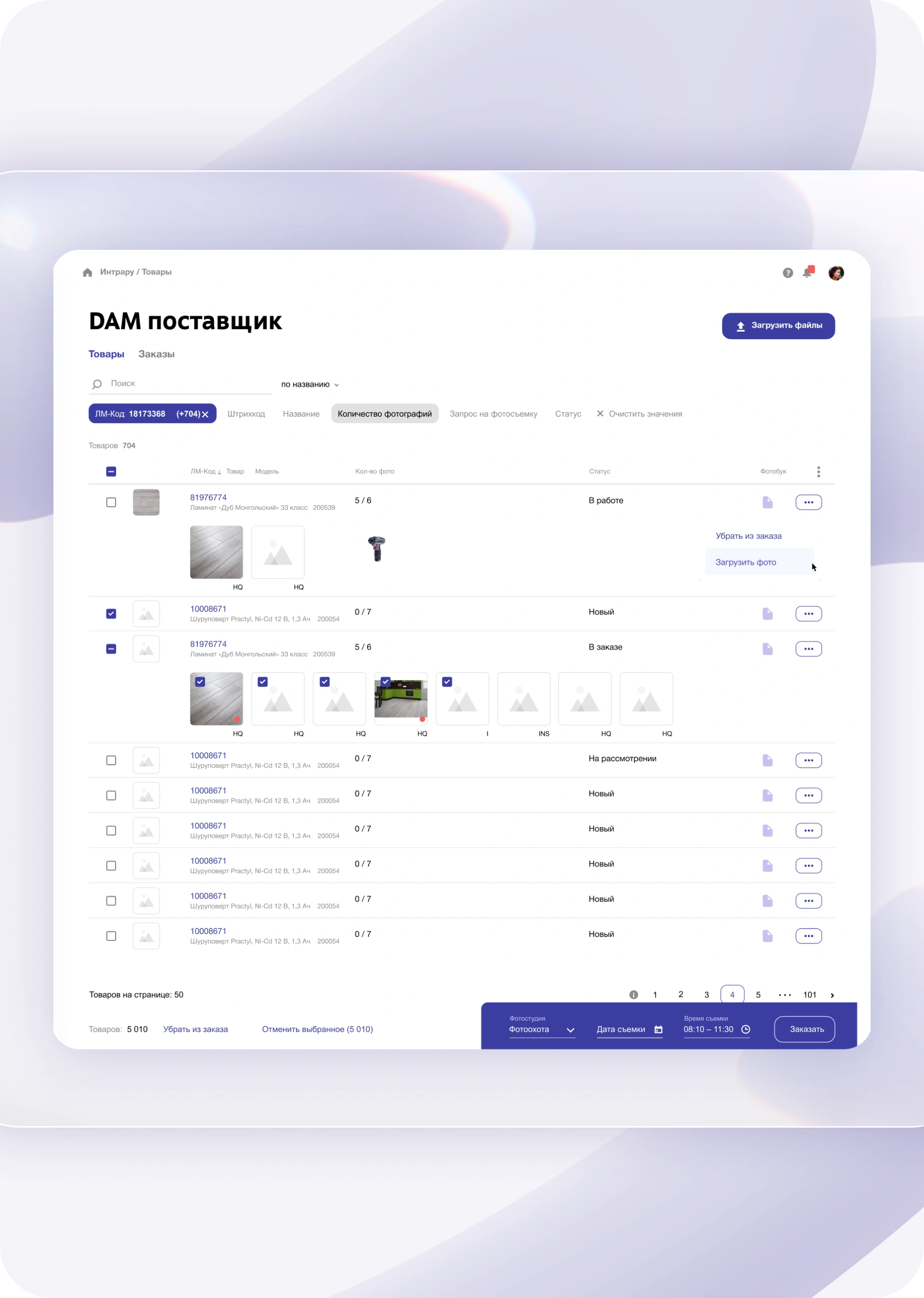 Система охватывает все этапы работы — от создания заявки на съёмку до финальной публикации. Фотостудии загружают материалы напрямую, а контент-менеджеры проверяют их на соответствие стандартам компании