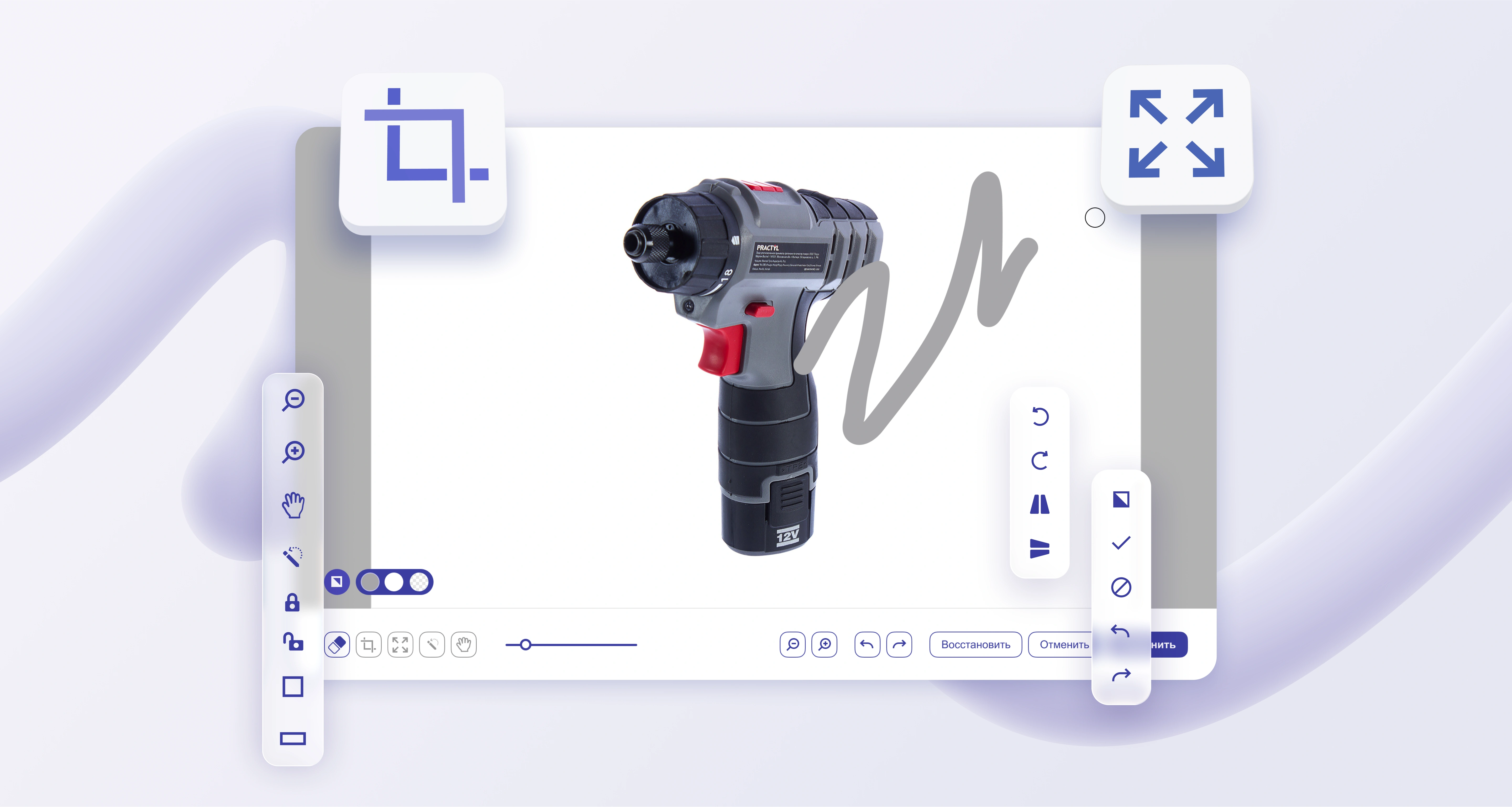 Система позволяет быстро редактировать изображения: обрезать, менять размер, добавлять текст. Все исходники сохраняются отдельно, а любые правки можно отследить по истории изменений.