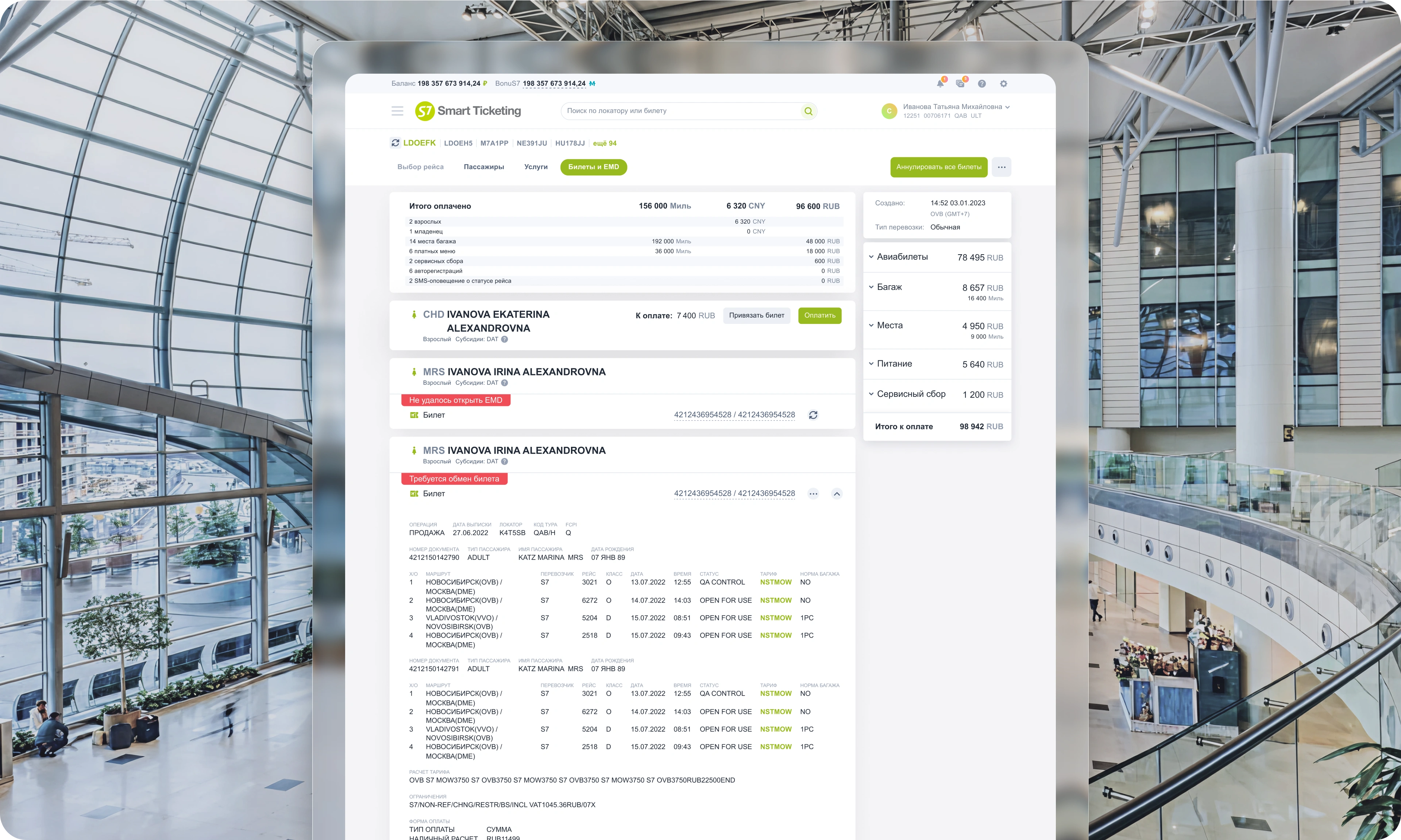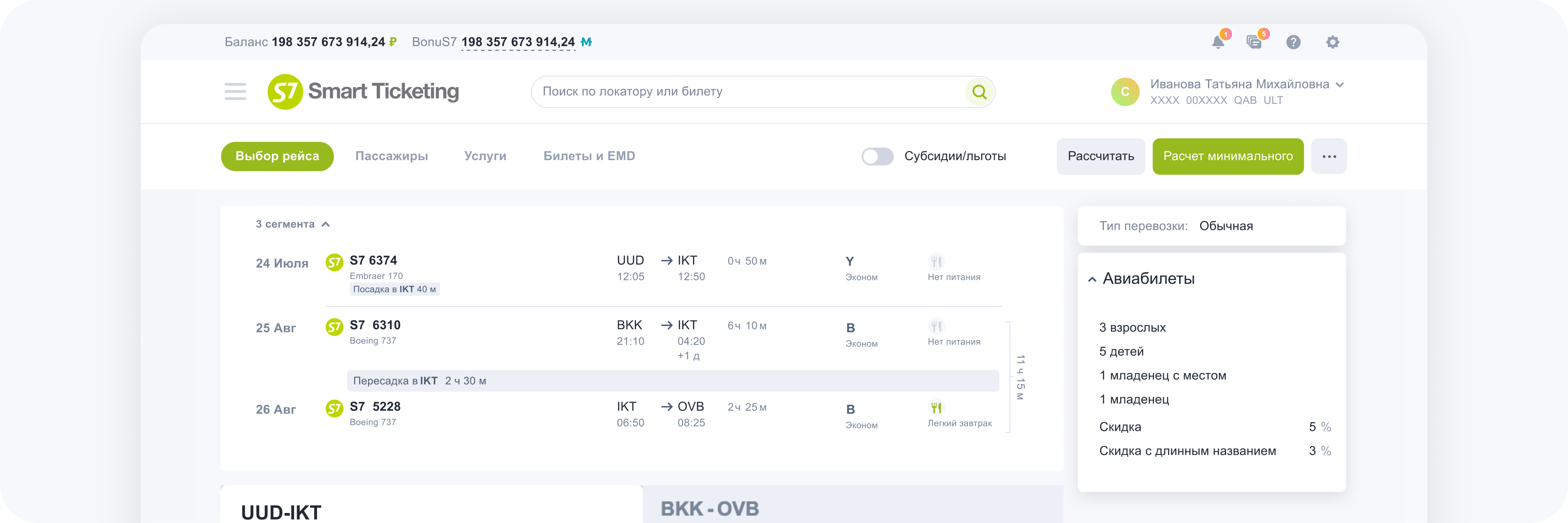 S7 Smart Ticketing – это графический веб-интерфейс, который предназначен для оффлайн-продажи авиабилетов и дополнительных услуг в офисах агентов и партнеров авиакомпании.