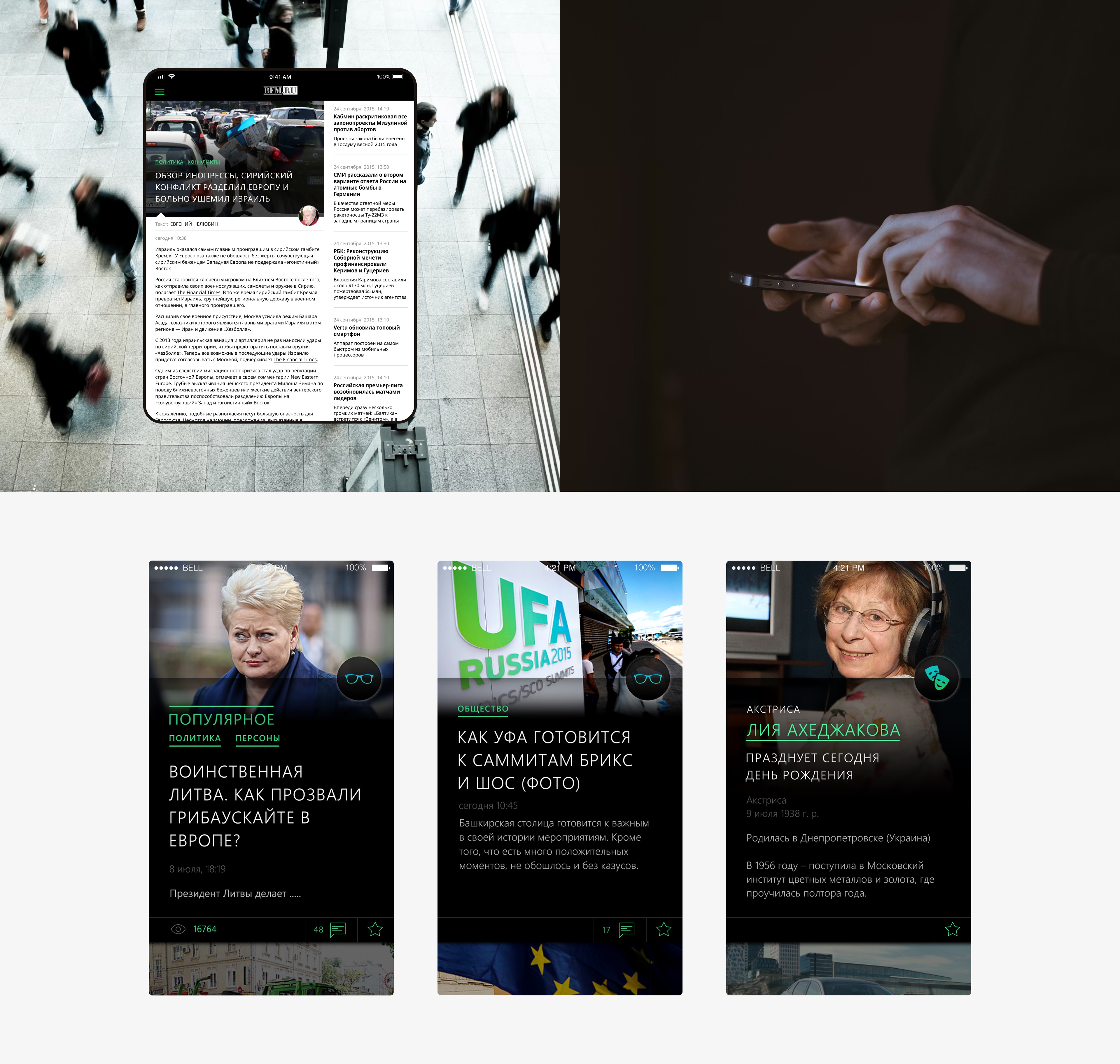 Разработали дизайн новостного приложения для тех, кому важно быстро оценить ситуацию, выбрать главное и двигаться дальше. Лаконичный минимализм с точными визуальными акцентами помогает занятому читателю моментально находить нужное, погружаться в материал и переключаться между темами. Интерфейс наследует стилистику издания, сохраняя узнаваемость BFM.ru в мобильном формате.